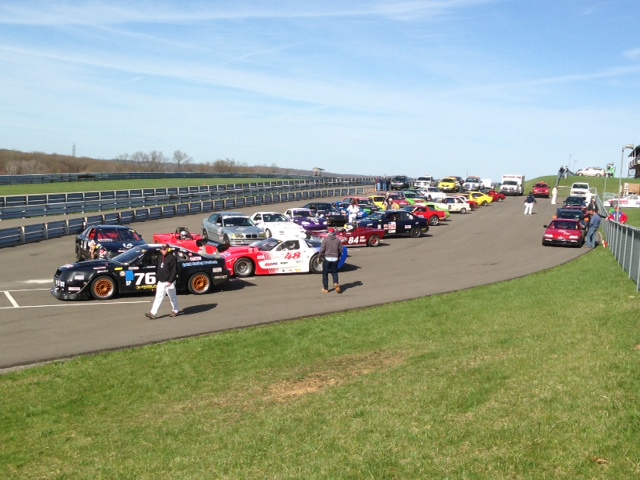 Over the weekend of 4/20-21/2013 Steel Cities SCCA hosted a Double Driver School, Restricted Double Regional and a Club Trial. The event started Friday night with registration and class room session for the 14 students for the driver school. Saturday started off cold with some snow showers, and a very damp track. First group out was our Club Trial, divided into two groups of 11, followed by the students from the school, and after a couple of sessions our regional racers got out on track. They were also divided into two groups, with the first group being 10 cars and the second having 18 cars. We finished out the day with two Regional races. The first race, was won overall by Chris Durbin, the second was won by Neil Killey overall, with a new lap record being set by Charlie Campbell in SM @1:08.386. Sunday started with a dry track and a very busy schedule for the students as there was no Club Trial this day. Sessions rotated between the driver school and the regional race groups, the day came to a close with a combined regional race, in which the driver school students could participate, if they chose to. We had 25 Regional racers along with 8 of the students start this race. The overall race winner was Chris Durbin in his very fast Ford Mustang, with a new track record for Dan Hardison in ITB @ 1:10.517.